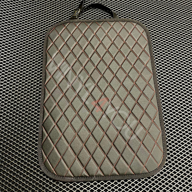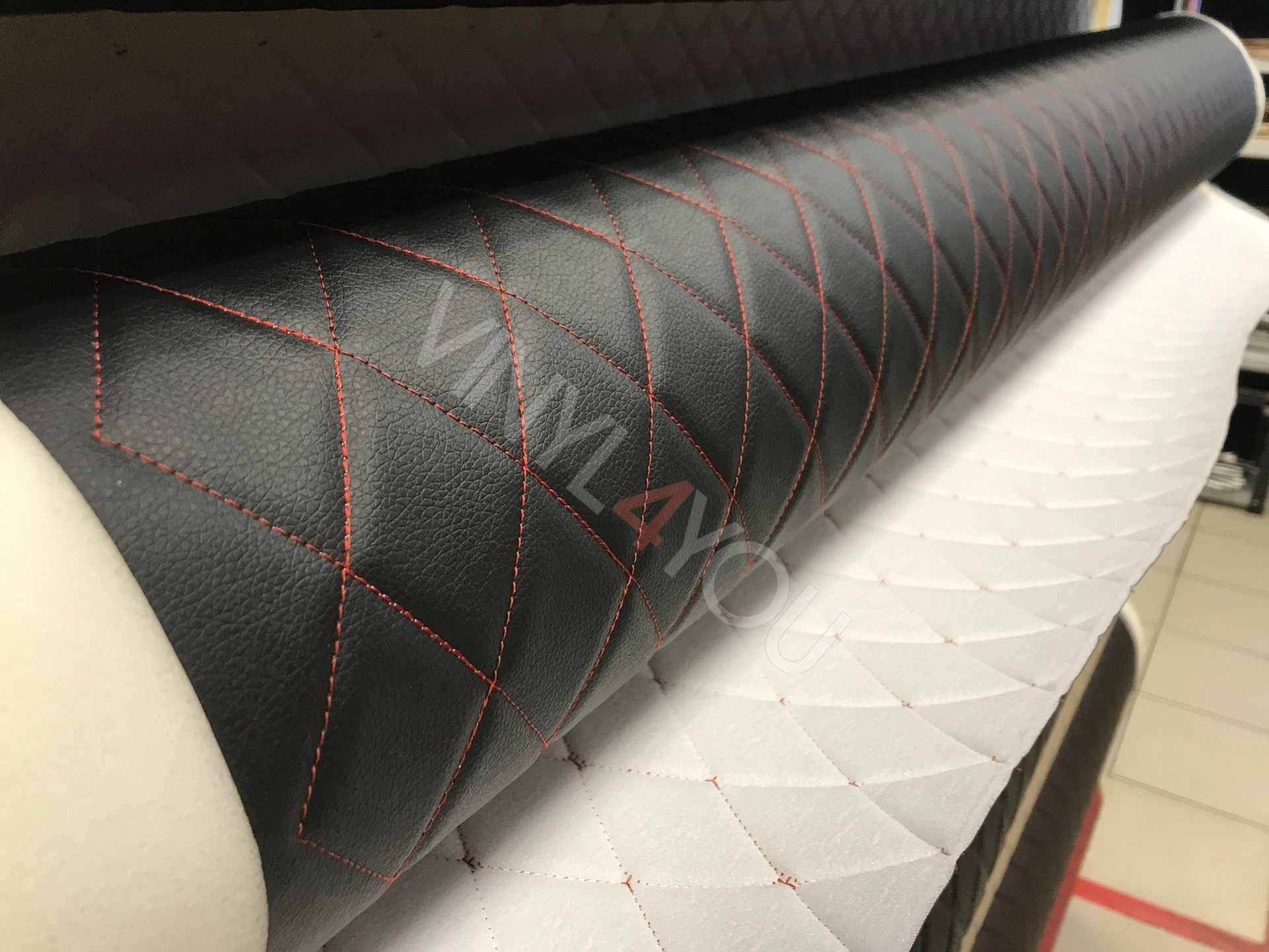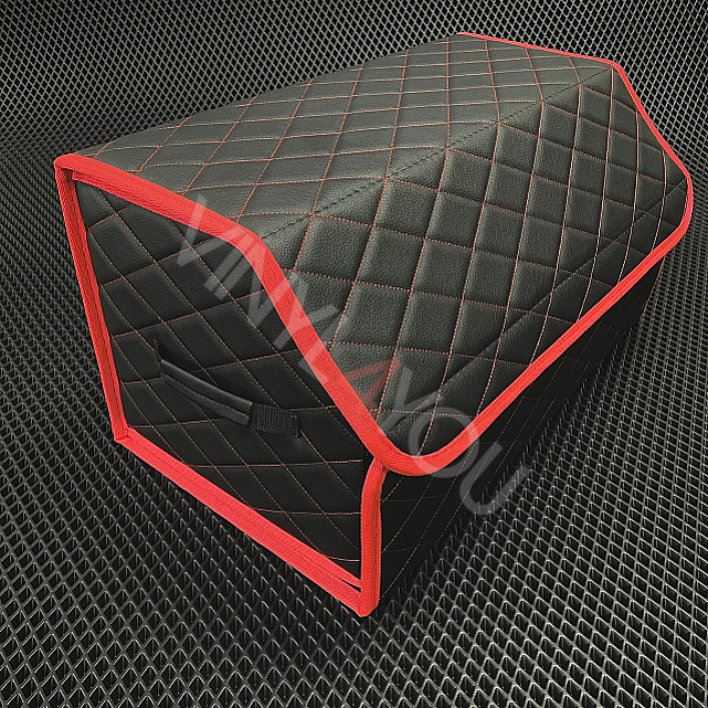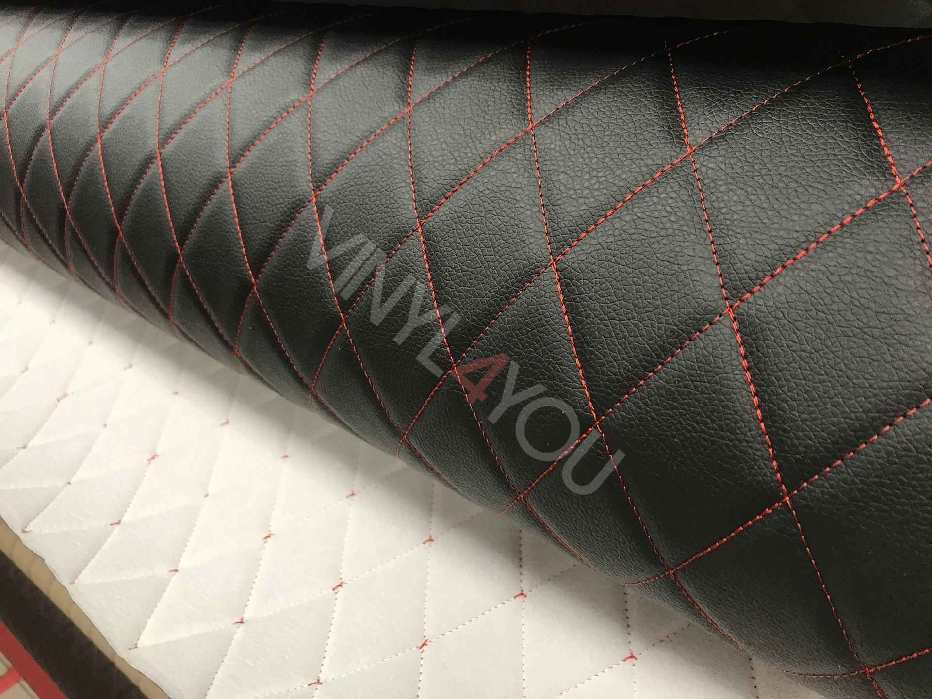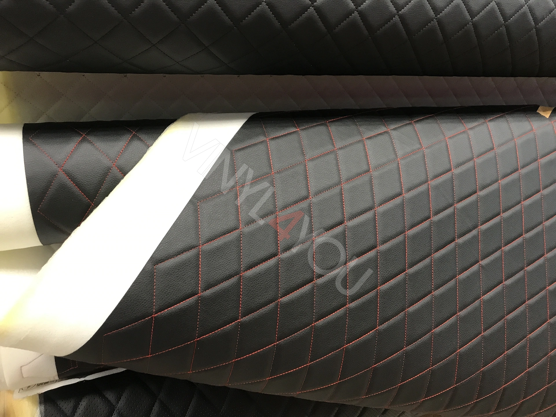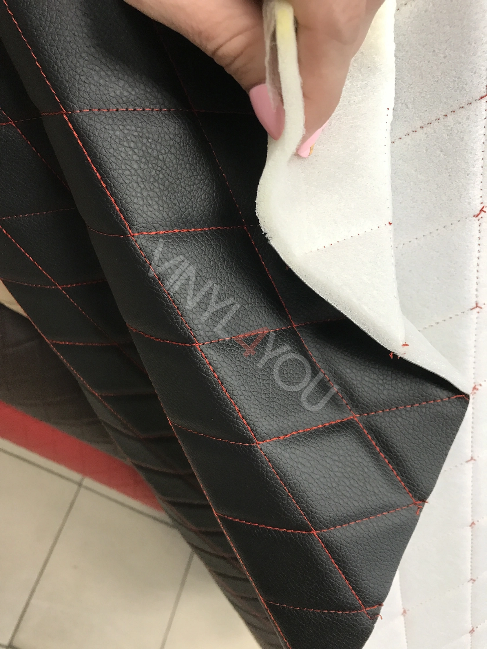 Экокожа стеганая Ромб Черная с Красной строчкой